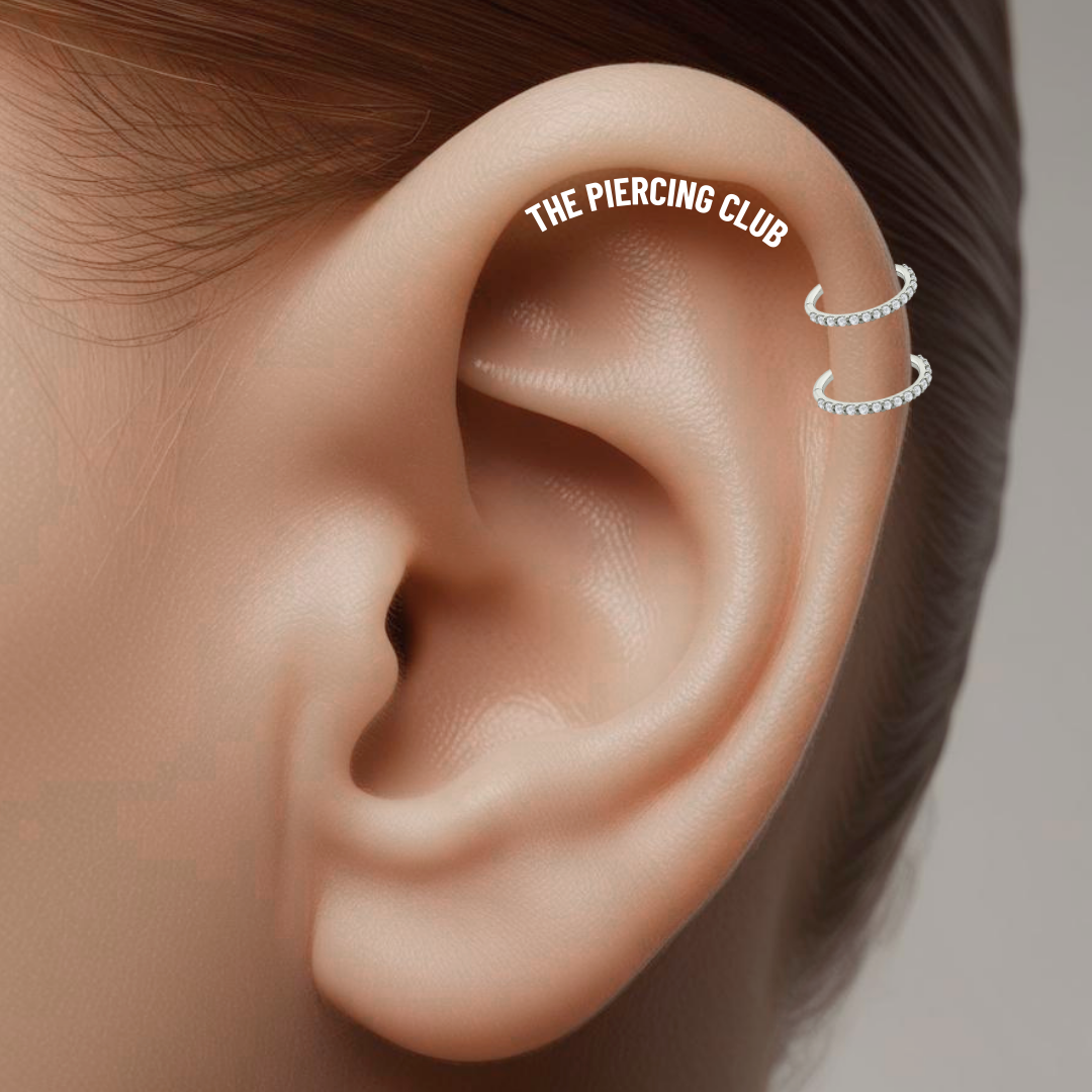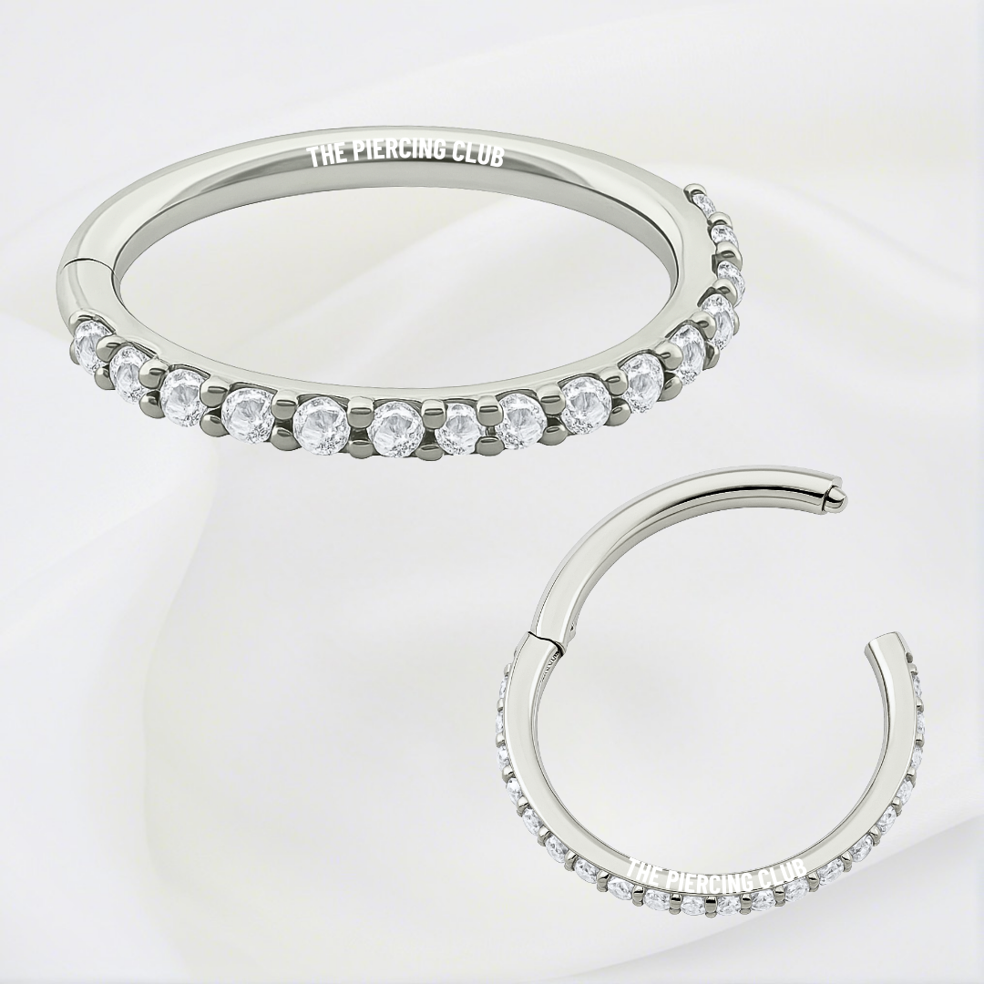 Aro, argolla cristal blanco deluxe / Helix piercing, titanio grado implante