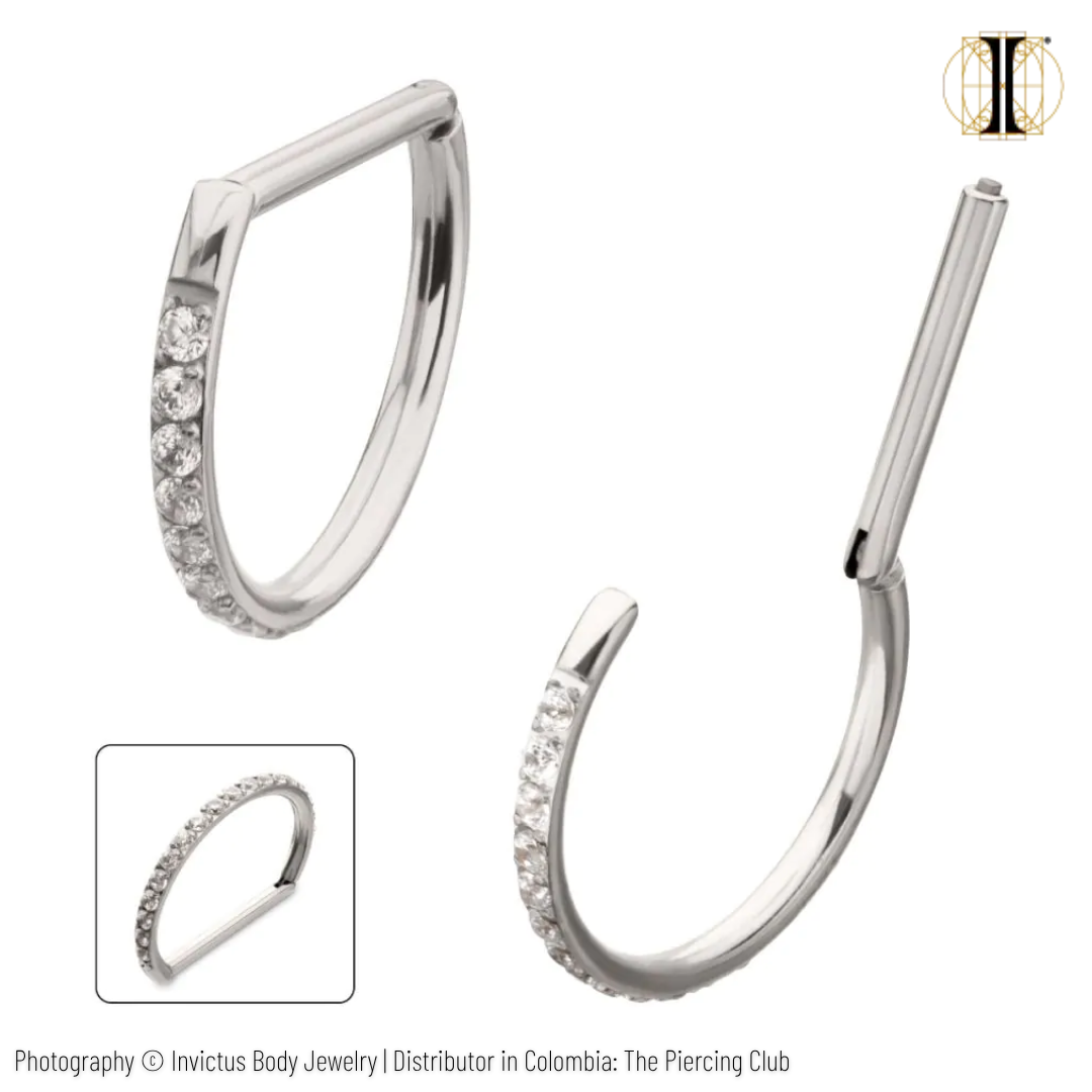 Este aro clicker de titanio grado implante con cristales blancos suizos es la joya perfecta si tu perforación no está al 100% pero quieres utilizar un aro. Ideal para Helix y Conch.