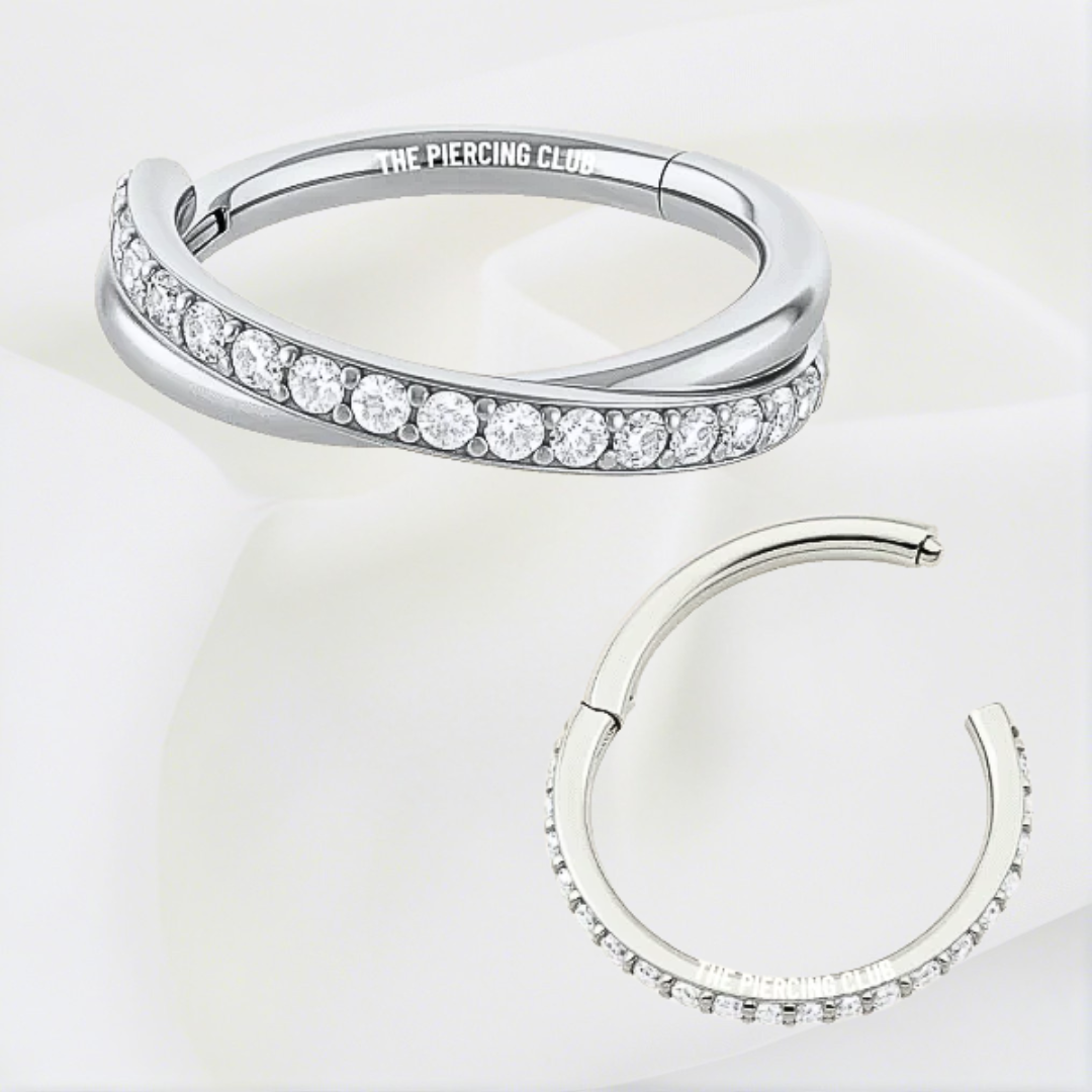 Aro, argolla doble cruzada cristal blanco deluxe / Helix piercing, titanio grado implante