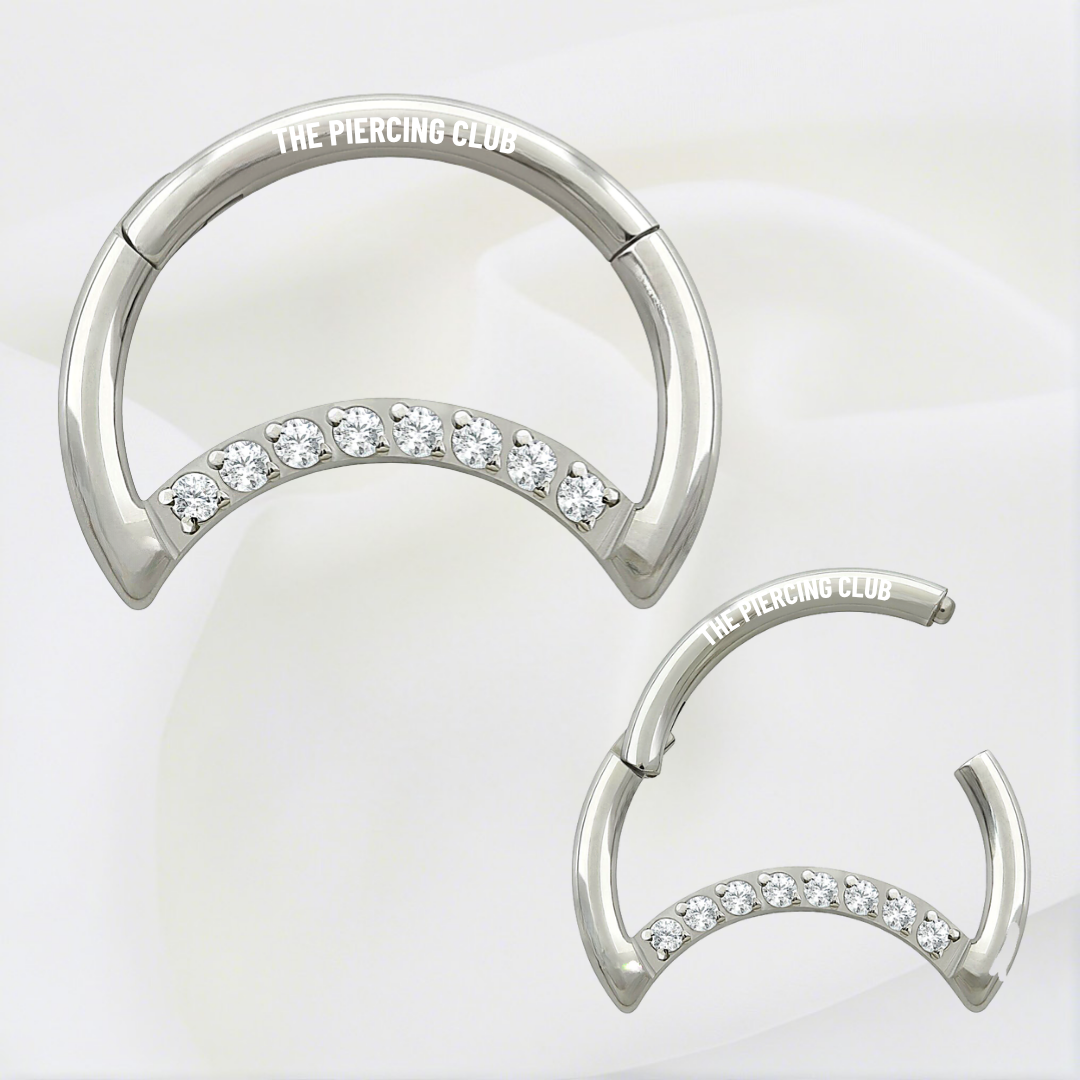Aro, argolla Luna con cristal blanco deluxe / Daith piercing titanio grado implante