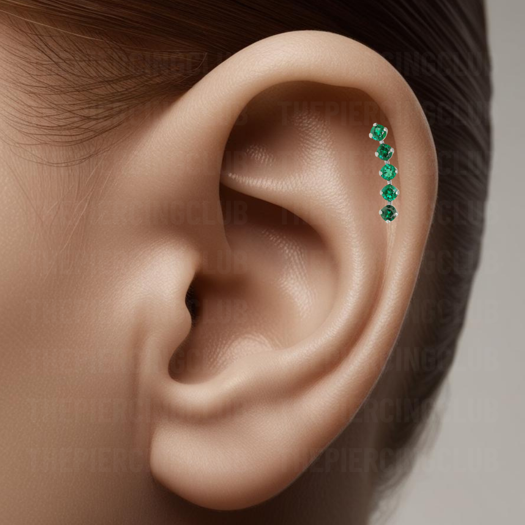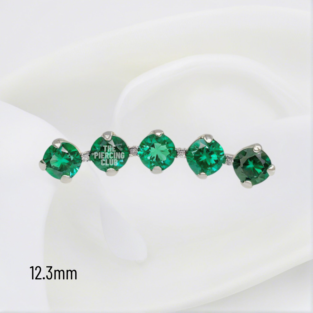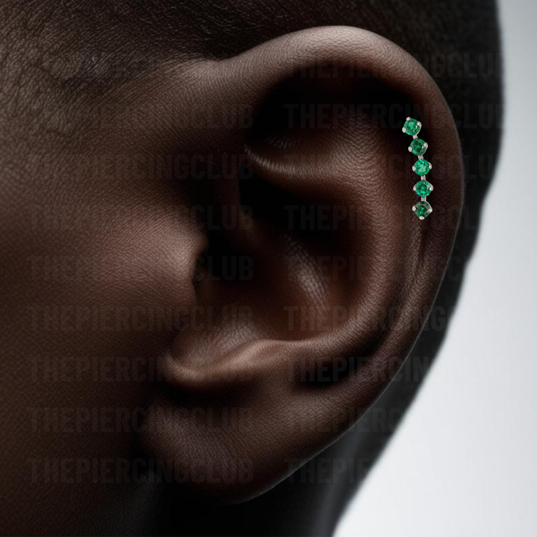 Joya 100% en titanio grado implante con pulido en su superficie, lo que realmente la hace especial es su cristal suizo verde, que atrapa la luz de una manera increíble, dándole un brillo sofisticado y elegante. Es el detalle perfecto para resaltar tu estilo sin sacrificar el bienestar de tu piel. (Representa fuerza, juventud, renovación constante y ayudan a estabilizar emociones, atraer paz y promover la sanación interior).