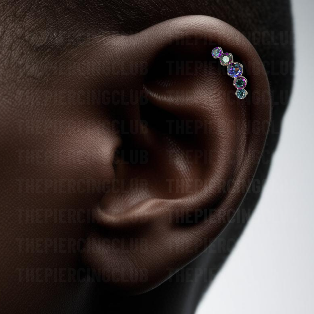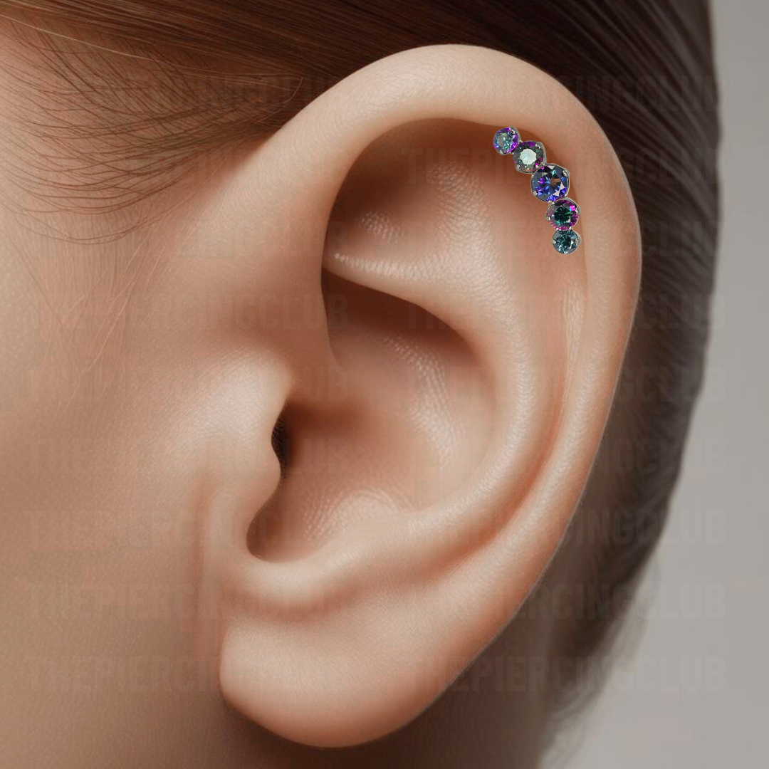 Joya cluster de cristal aurora boreal oscuro deluxe / Helix piercing, titanio grado implante