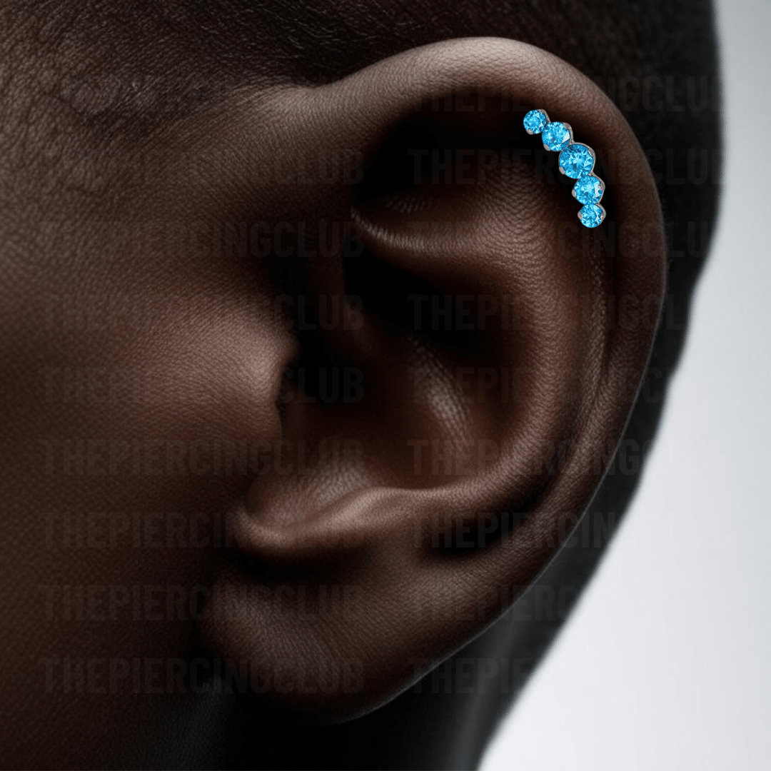 Joya cluster de cristal azul deluxe / Helix piercing, titanio grado implante