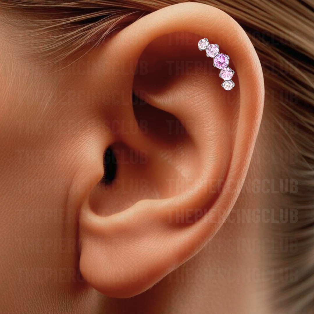Joya cluster de cristal rosado deluxe / Helix piercing, titanio grado implante