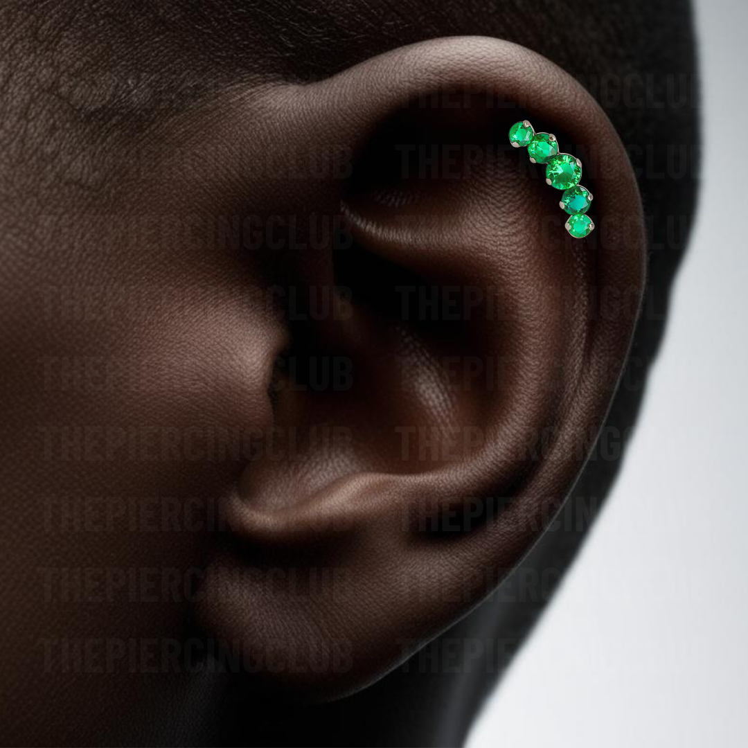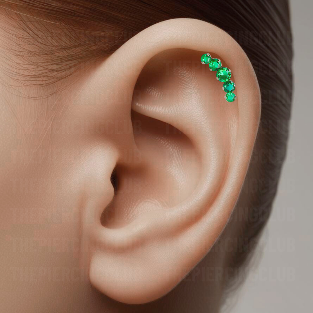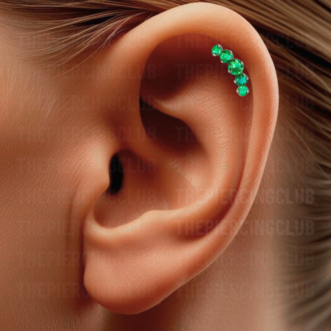 Joya cluster de cristal verde deluxe / Helix piercing, titanio grado implante