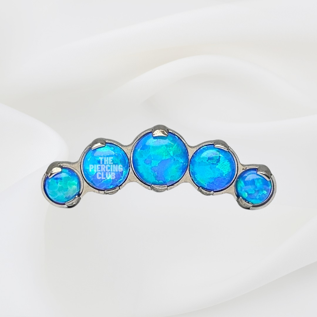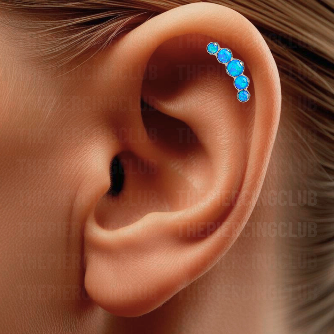 Joya 100% en titanio grado implante con pulido en su superficie pero que realmente la hace especial es su piedra de ópalo azul, hipnótico y profundo, como un cielo estrellado o las aguas de un lago misterioso. Es el detalle perfecto para resaltar tu estilo sin sacrificar el bienestar de tu piel.