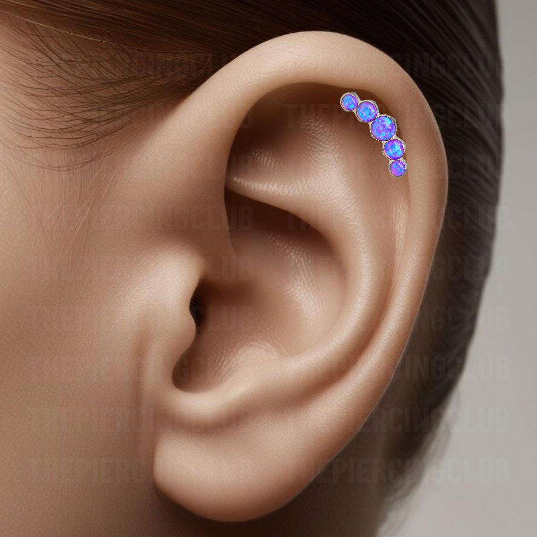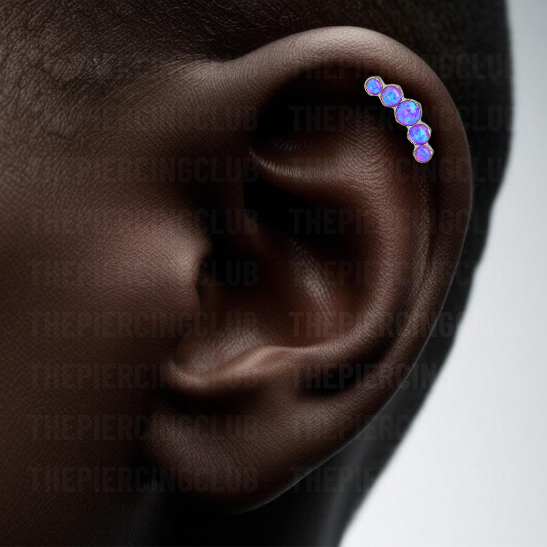 Joya 100% en titanio grado implante con pulido en su superficie pero que realmente la hace especial es su piedra de ópalo púrpura, intenso y elegante, con reflejos que parecen sacados de un cuento de fantasía. Es el detalle perfecto para resaltar tu estilo sin sacrificar el bienestar de tu piel.