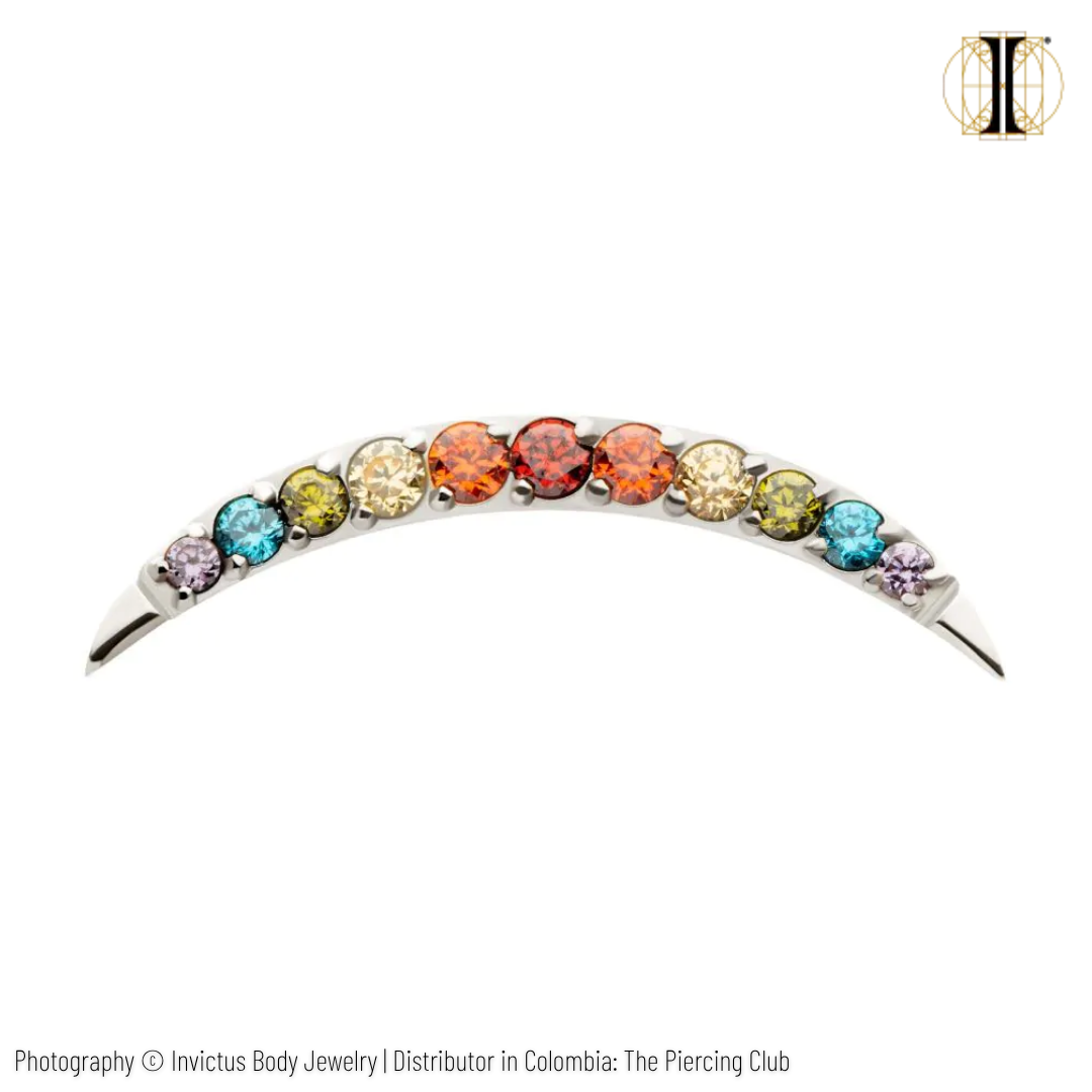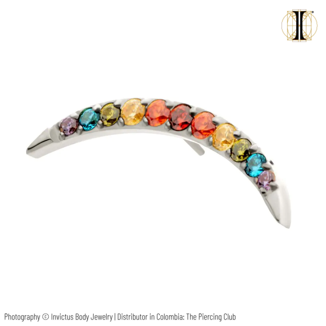 Una pieza delicada y vibrante que combina cristales multicolor en una elegante curva de titanio grado implante, cuidando tu piel y resaltando tu estilo. Perfecta para dar un toque alegre y sofisticado a tu look diario. Stock limitado: ¡llévatela antes de que vuele!