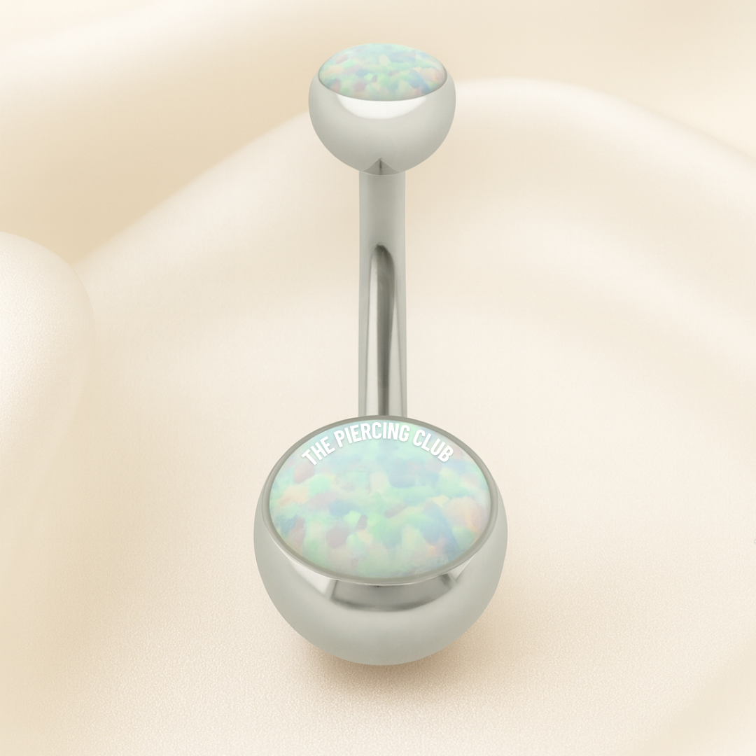 Joya con piedra de ópalo blanco / Navel (Ombligo) piercing , titanio grado implante