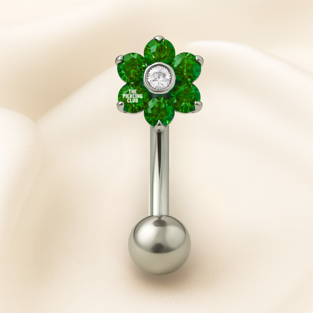 Joya flotante de flor con cristal verde deluxe / Navel (Ombligo) piercing , titanio grado implante