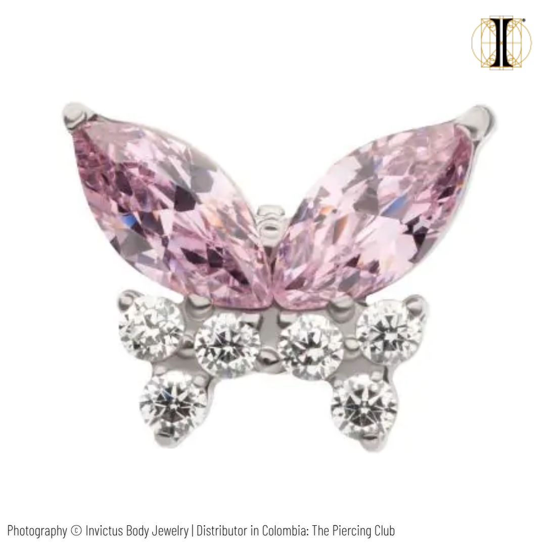 Joya mariposa multigema con cristal rosado deluxe / Titanio grado implante / INVICTUS