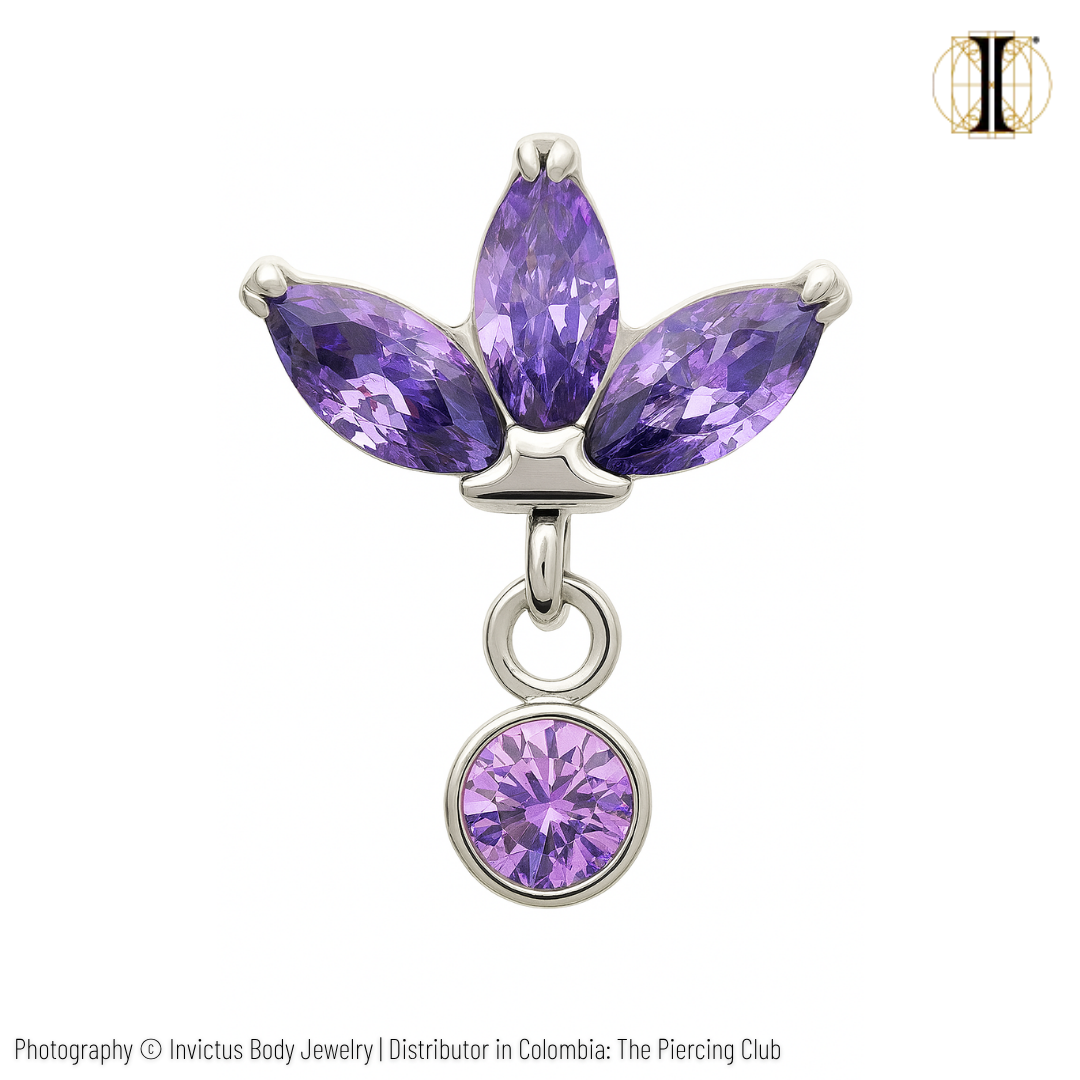 El toque elegante que necesitas. Cristales suizos púrpura montados en titanio grado implante para un brillo sofisticado que atrae miradas sin esfuerzo. Ideal para un look único y femenino. 📦