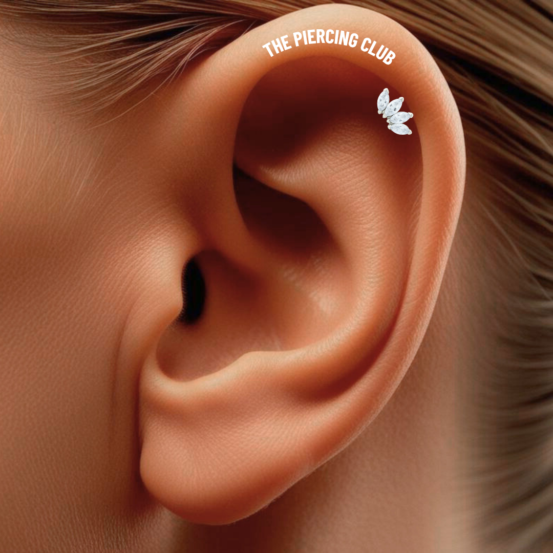 Joya marquise x4 cristal blanco deluxe / Helix piercing, titanio grado implante