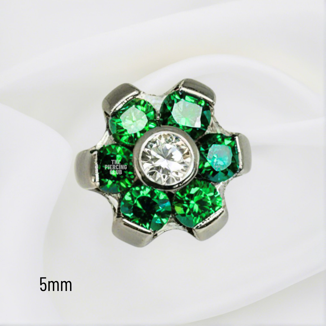 Joya mini hexaflor cristal verde esmeralda deluxe / Helix piercing, titanio grado implante