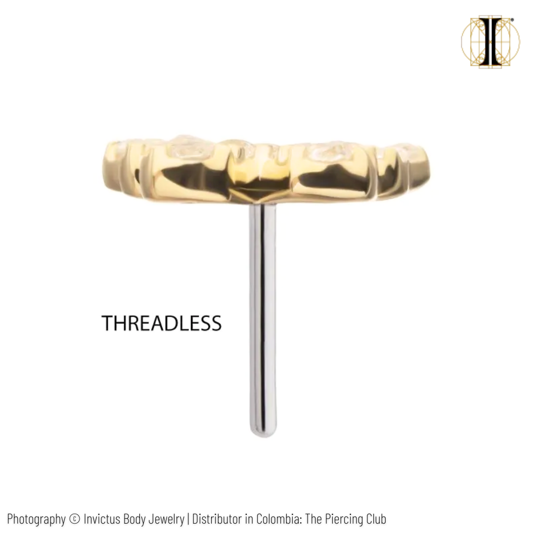 • Top en oro macizo 14k / Lo que va por dentro de la piel (Labret) en titanio grado implante.