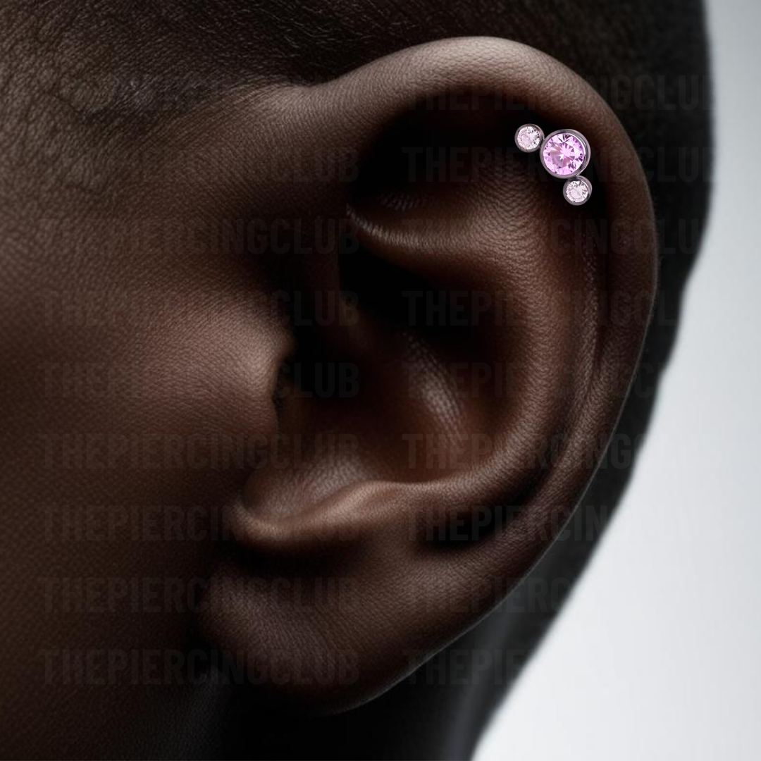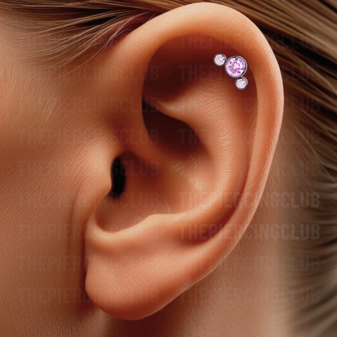 Joya neptuno cristal rosado bezel / Helix piercing, titanio grado implante