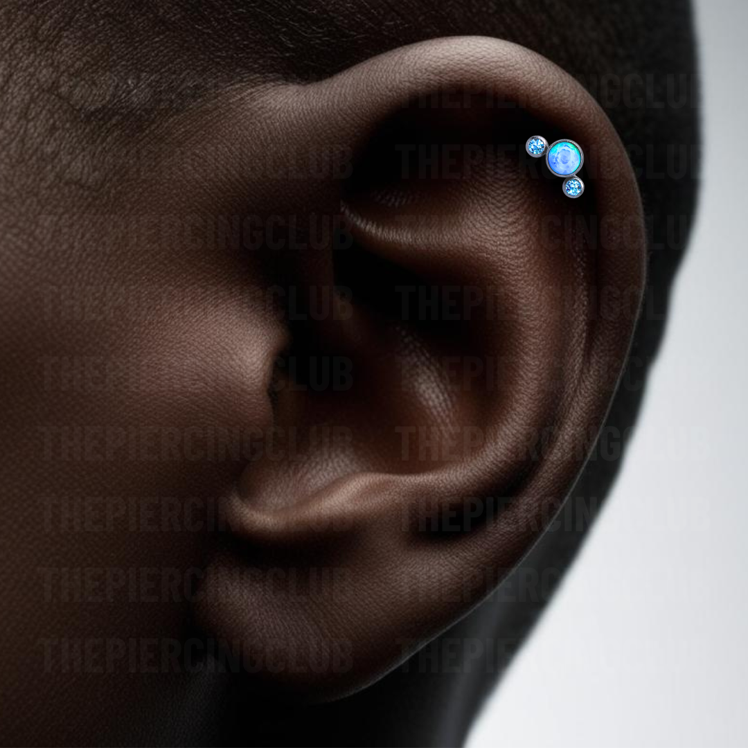 Joya neptuno ópalo y cristal aguamarina bezel / Helix piercing, titanio grado implante cantidad