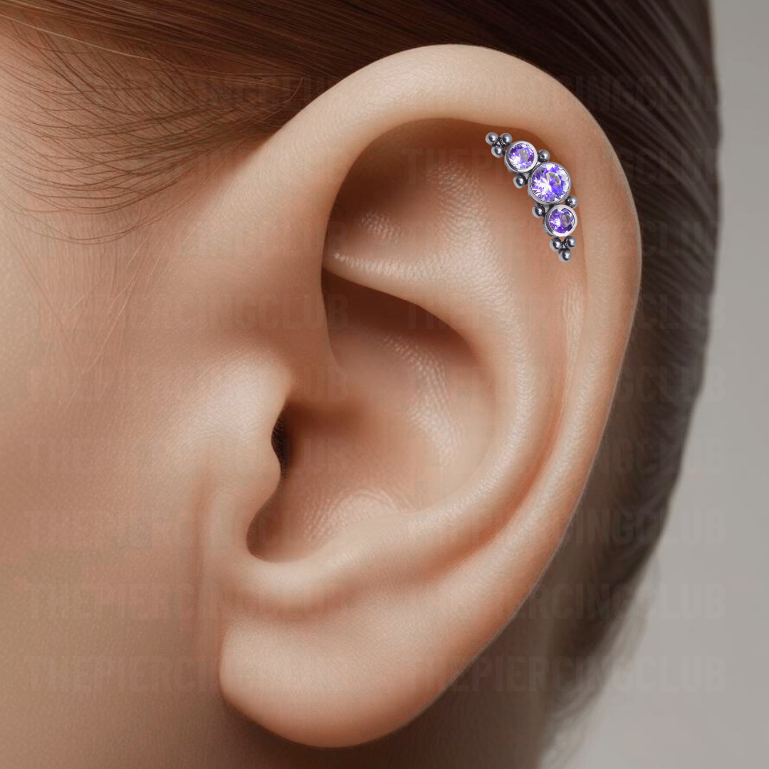 Joya solstice cristal morado bezel / Helix piercing, titanio grado implante