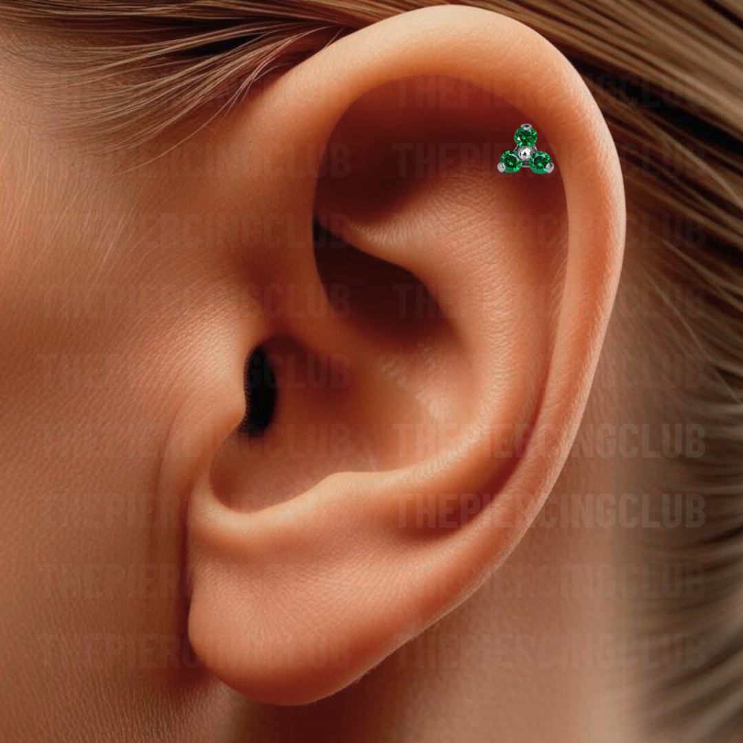 Joya trilogy cristal verde esmeralda deluxe / Helix piercing, titanio grado implante